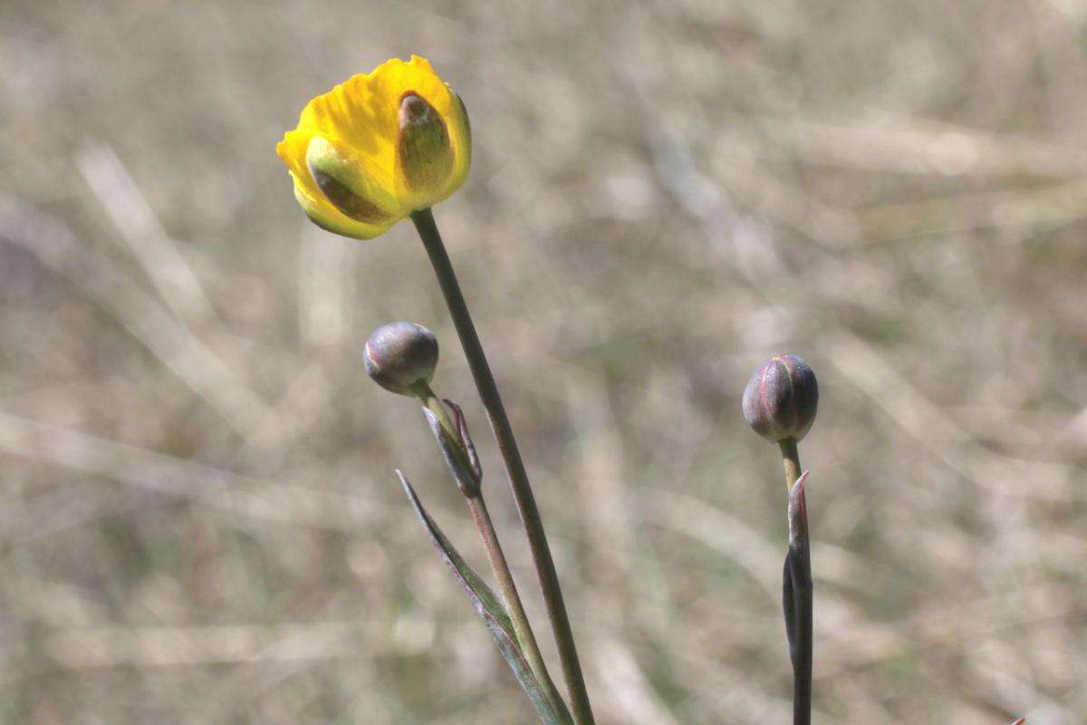 • Fleurs jaunes, grandes, peu nombreuses, longuement pédonculées. Sépales glabres. Pétales ovales-triangulaires. Réceptacle glabre.